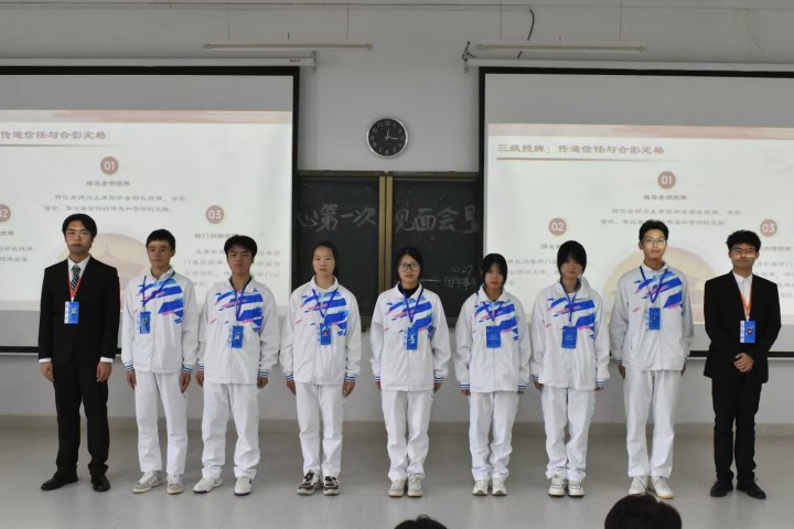 会议伊始,张琳琳强调成员要树立集体意识,遇到工作难题及时向学姐学长请教。要按指令完成任务,成员之间协同合作。随后,赖昭渭热烈欢迎新成员加入团学事务中心,提出希望部门之间多交流沟通,成员多参与实践活动,别怕出错,敢于尝试。各部门部长依次为新干事颁发岗位牌并进行合影留念,赋予身份认同、明确责任使命。最后,赖昭渭围绕即将到来的校运动会开展动员,号召全体人员以运动会为契机,展现团结拼搏的精神风貌,同时要求团学事务中心各部门协同做好赛事服务。